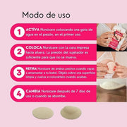Além disso, os adesivos são capazes de absorver 10 vezes o seu peso em líquidos. A almofada terapêutica pode ser reutilizada sem rasgar ou deixar qualquer resíduo na ferida, pelo que não é necessário limpar o mamilo antes ou depois de cada utilização. Graças a esta qualidade, o NURSICARE garante a higiene e assepsia necessárias em relação a outros produtos como pomadas, cremes ou óleos.