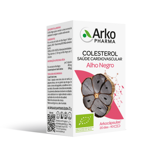 ArkopharmaO Alho Negro ajuda a manter os níveis normais de colesterol no sangue e a saúde cardiovascular. Como Usar Recomendado a partir dos 6 anos. Tomar 2...