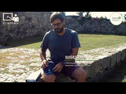 Desenho anatómico. Zona macia na flexão do cotovelo. Almofadado anatómico de silicone. Faixa de ajuste no antebraço. Sem costuras. Bilateral.