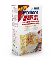 Meritene Cereal Instant é um alimento em pó à base de cereais com vitaminas e minerais. Constitui um creme de cereais altamente nutritivos e de fácil ingestão. Com farinhas hidrolisadas que facilitam a dissolução para uma textura suave.