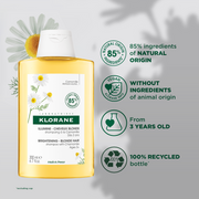 El champú iluminador de manzanilla está formulado para realzar de forma natural los tonos rubios, ya sean naturales, con mechas, teñidos o decolorados. La manzanilla se usa tradicionalmente para iluminar suavemente todos los tonos de rubio.