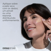 - Agitar antes de usar. Aplique ISDIN Coverage SPF 50+ sobre a pele seca com os dedos, um pincel ou uma esponja, distribuindo uniformemente.