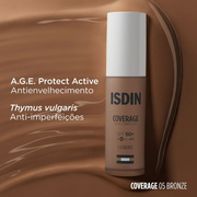 Exiba uma pele saudável e protegida com ISDIN Coverage SPF 50+, a base de maquilhagem com uma proteção solar muito elevada contra a radiação UVB/UVA e a luz azul. Com A.G.E. Protect Active, ajuda a retardar o processo de glicação na pele, reduzindo rugas e linhas de expressão para um rosto visivelmente mais jovem. Ajuda a controlar o excesso de oleosidade para uma pele sem brilho.