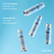 Proteja, hidrate e refresque a sua pele com o Facial Mist SPF 50, o fotoprotetor facial que se pulveriza em forma de bruma facial invisível e ultrafina. Confere uma proteção elevada contra a radiação UVB/UVA e a luz azul, hidrata em profundidade e ajuda a restaurar a barreira cutânea. Ideal para usar sobre a maquilhagem! Acabamento invisível, seco ao toque e não oleoso. Absorção imediata. Não é necessário tocar nem espalhar. Eficaz sobre a pele húmida. Não comedogénico. Testado dermatologicamente.