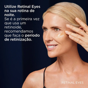 Consiga um olhar visivelmente mais jovem com Retinal Eyes, o sérum bifásico com retinaldeído para o contorno dos olhos que ajuda a reparar a pele de forma suave e corrige os sinais da idade: rugas, papos e olheiras, firmeza, luminosidade e fadiga.